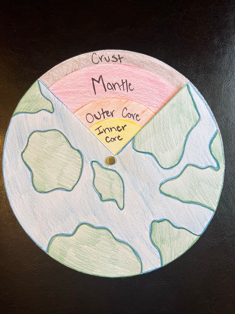 - Color the 7″ circle for your Mantle, the 4.5″ circle for your outer core, and the 3″ circle for your inner core.